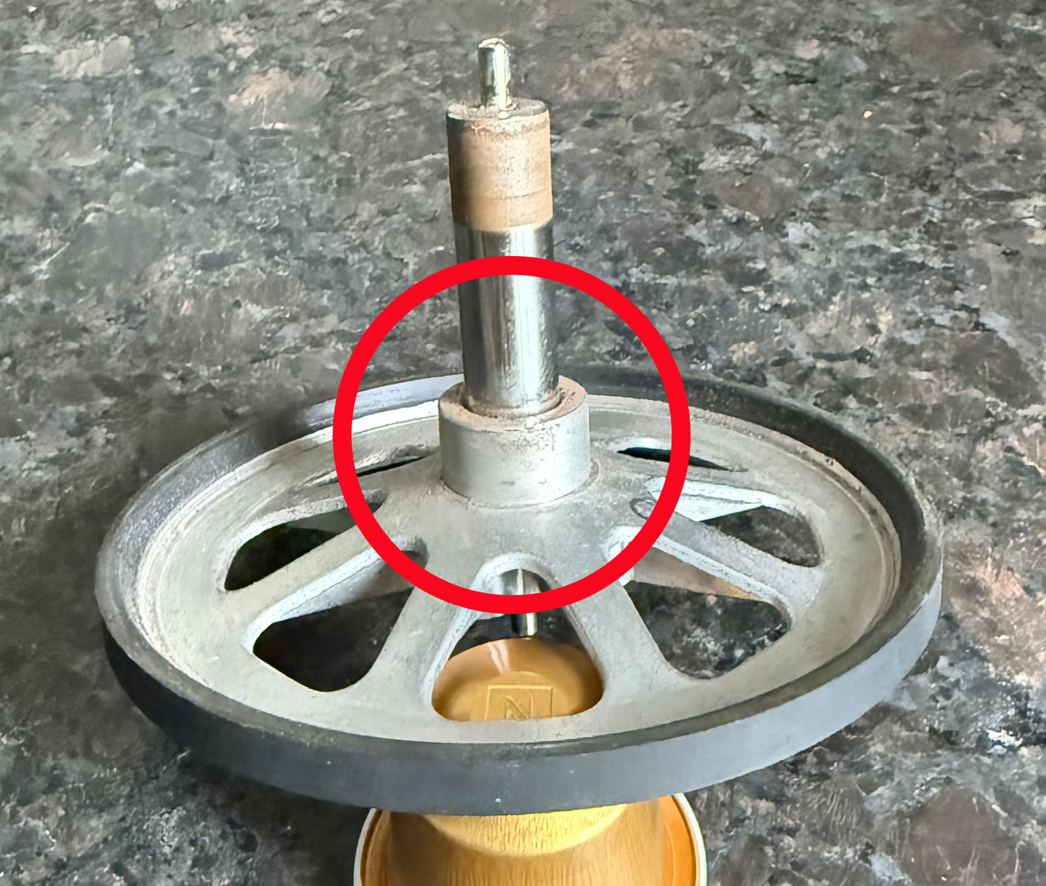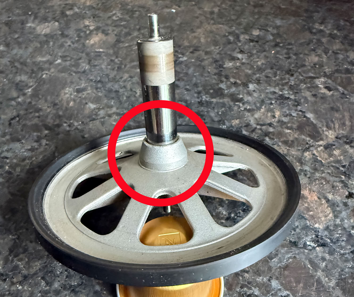 Die beiden Fotos bringen es an den Tag. Das „“alte“ Antriebsrad hatte eine zylinderförmige Achsnabe und das „neue“ hat eine konische Achsnabe.