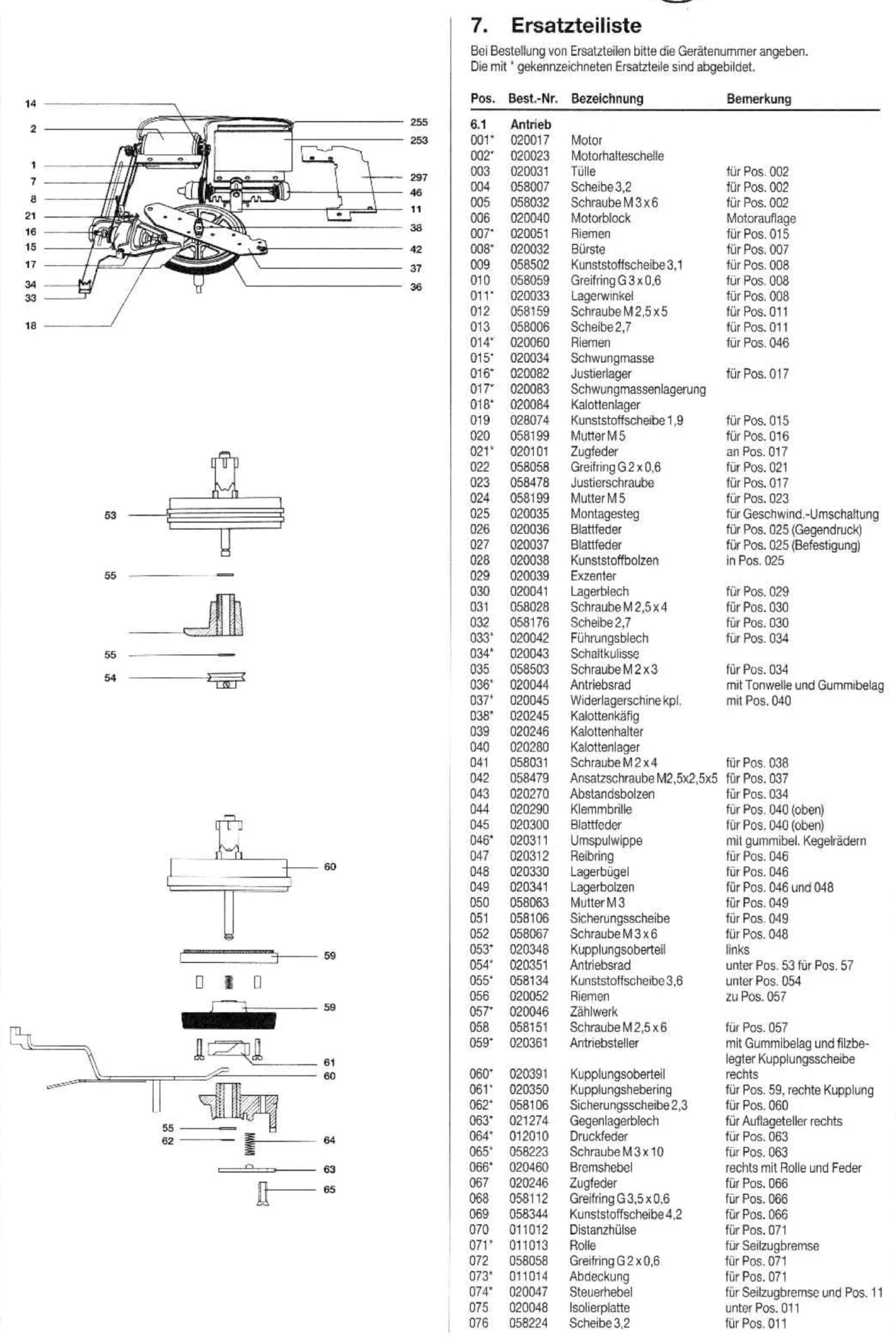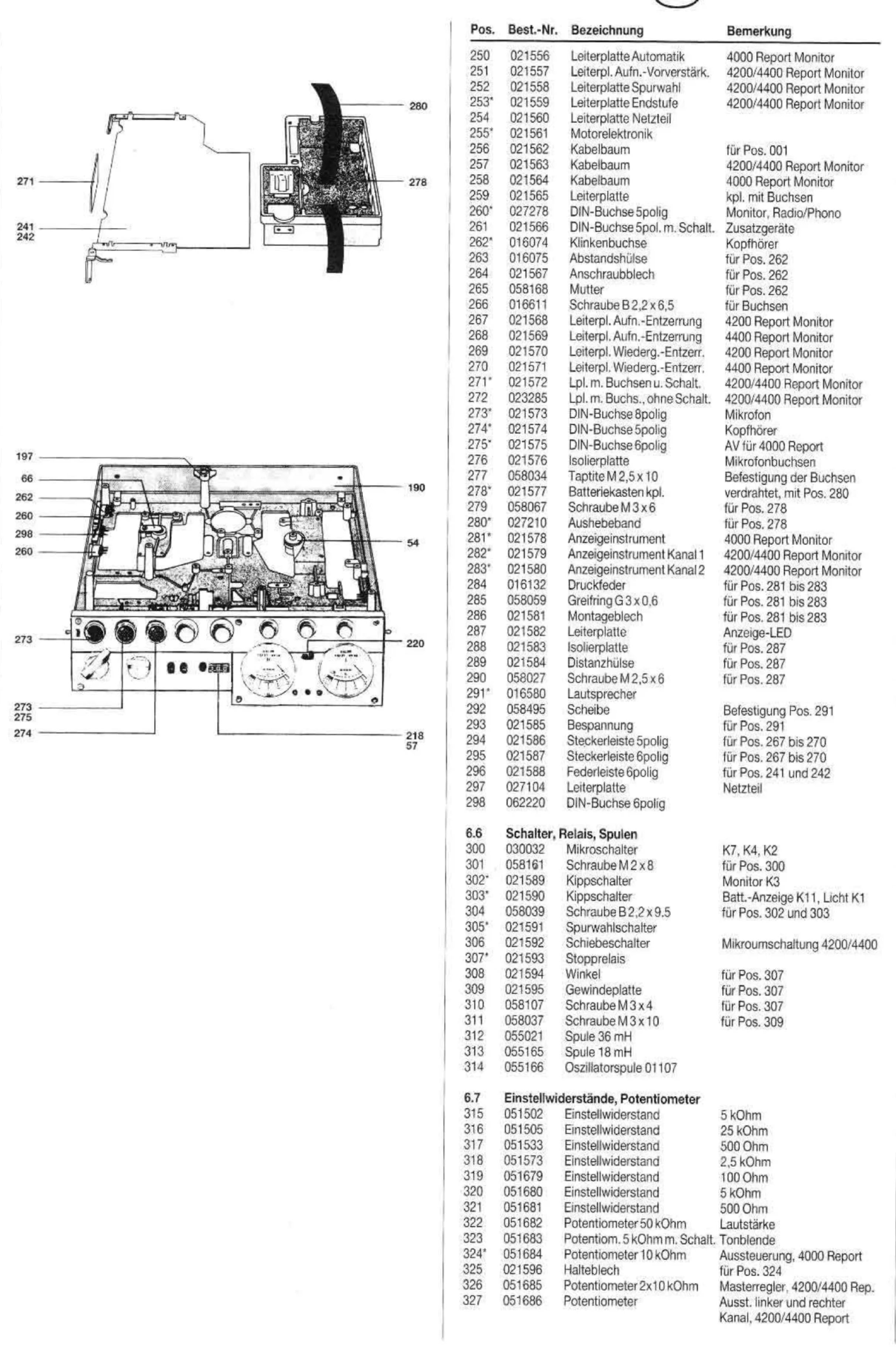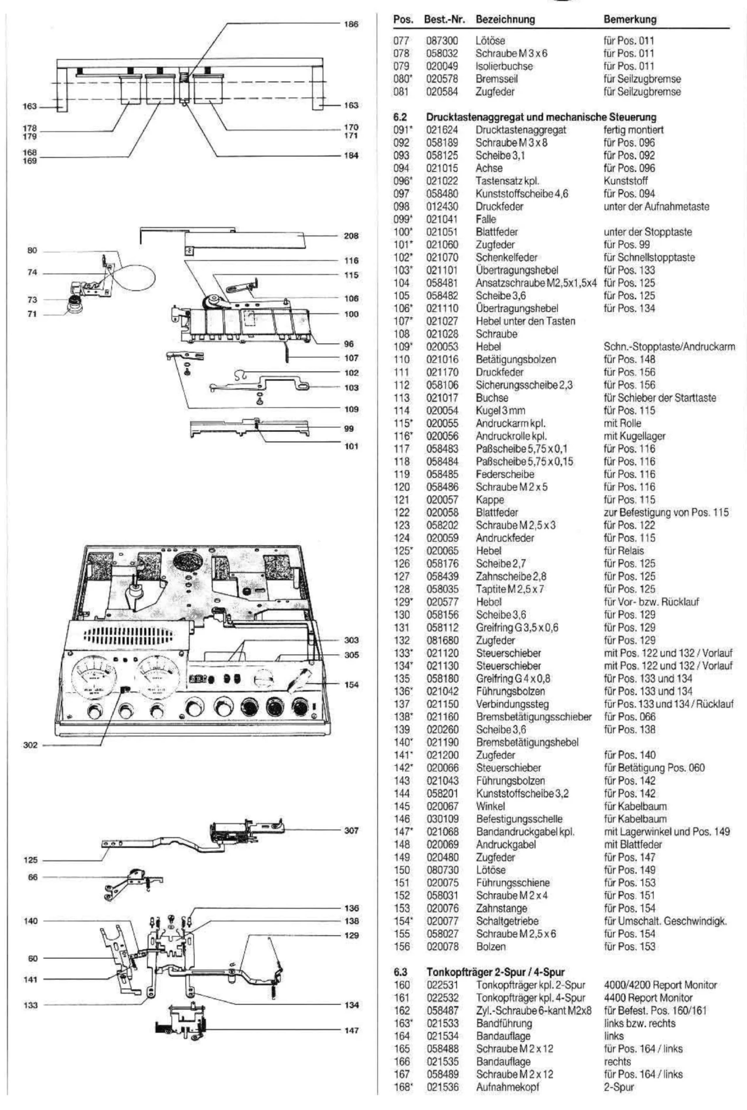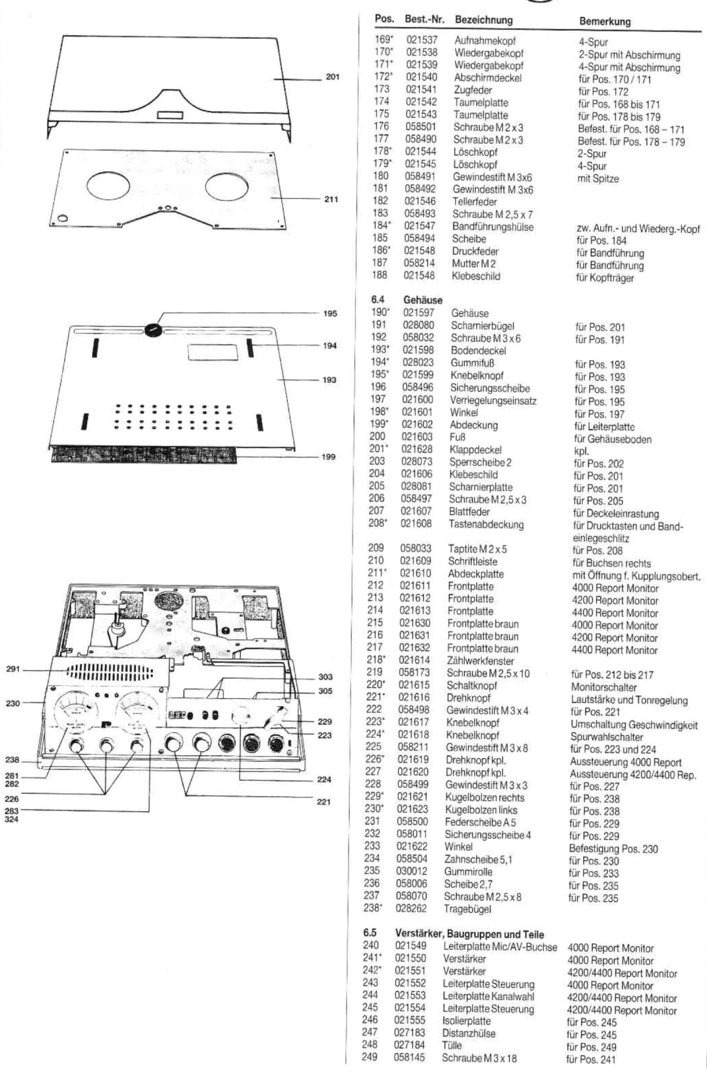 Bitte beachten: Bei Bestellung von Ersatzteilen ist immer die Nummer des Tonband-Gerätes anzugeben.