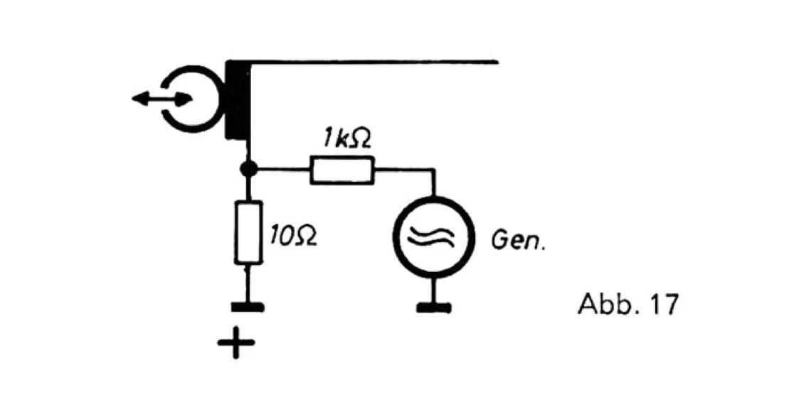 1. Ankopplungswiderstand von 10 Ohm in die zum +Pol führende Leitung des Tonkopfes einschalten.